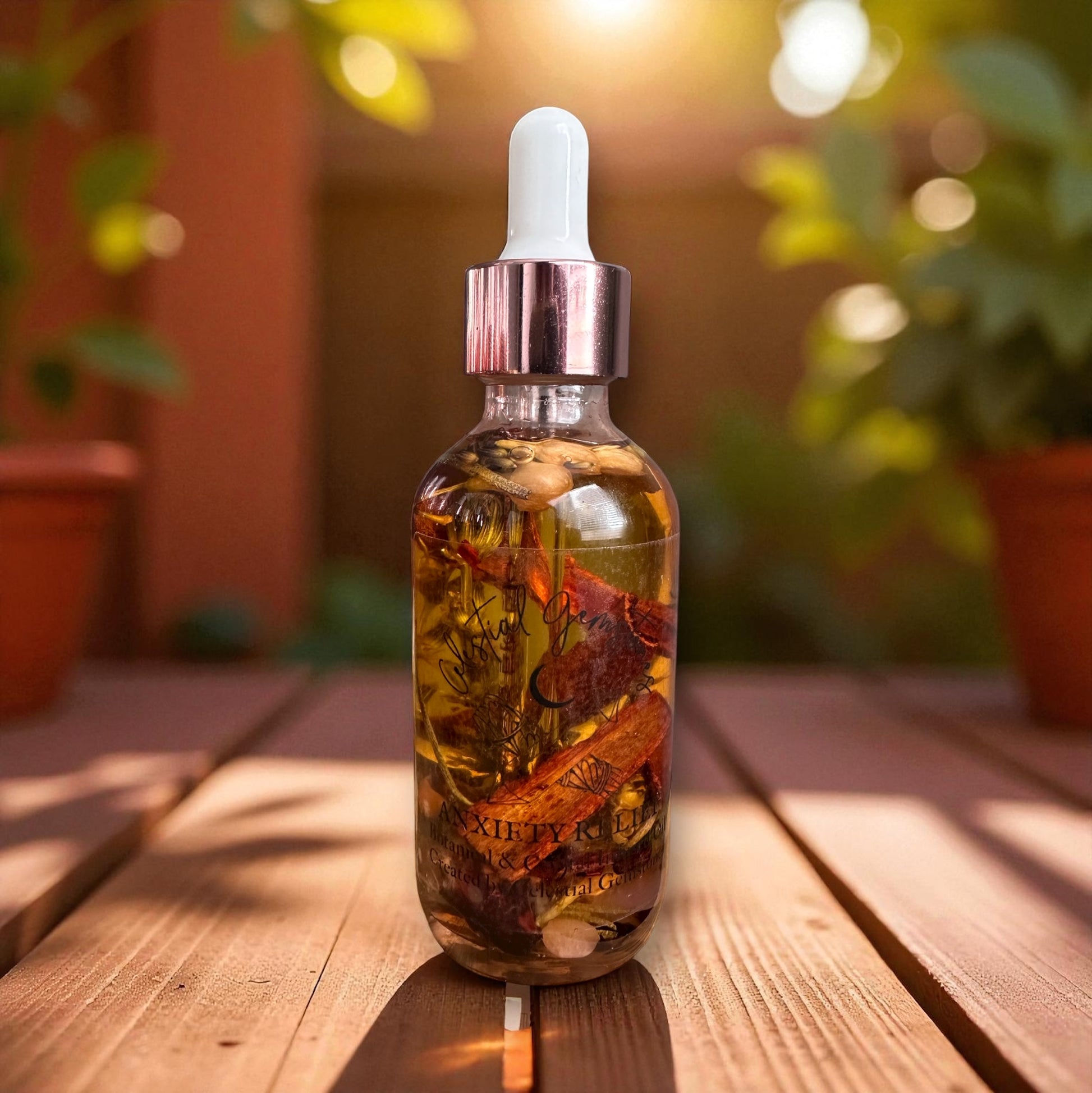 This intention oil is handcrafted with LOVE, using selected herbs & genuine crystals to aid in Anxiety & promote calmness.